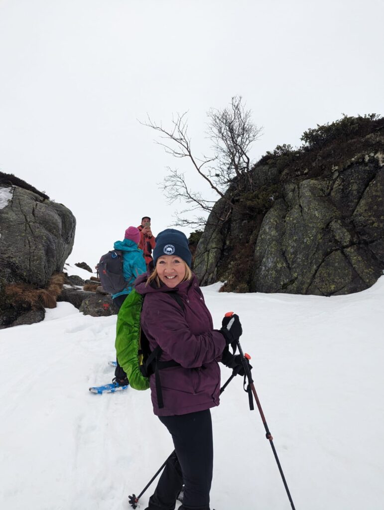 Next came a journey across the fjords, combining driving and ferry travel to reach the stunning Sirdal Mountain Range. Here, Cath experienced snowshoeing through untouched landscapes, something completely different from day-to-day life, and a reminder of the value in stepping outside your comfort zone.
